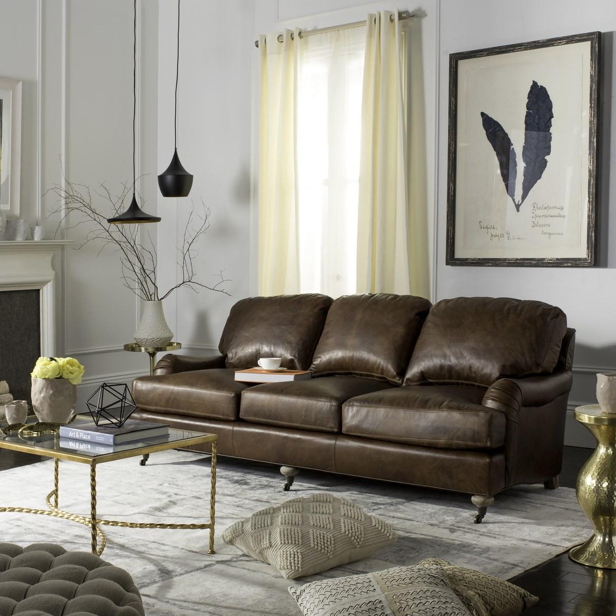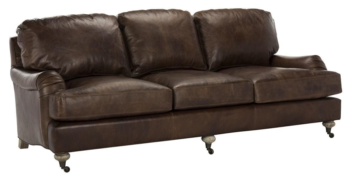 Truly transitional, the Danson Sofa makes a sophisticated statement with its classic English roll arm design, highlighted with stylish curves. Solid oak turned legs with brown finish and caramel leather upholstery give Danson contemporary character without losing its timeless appeal.