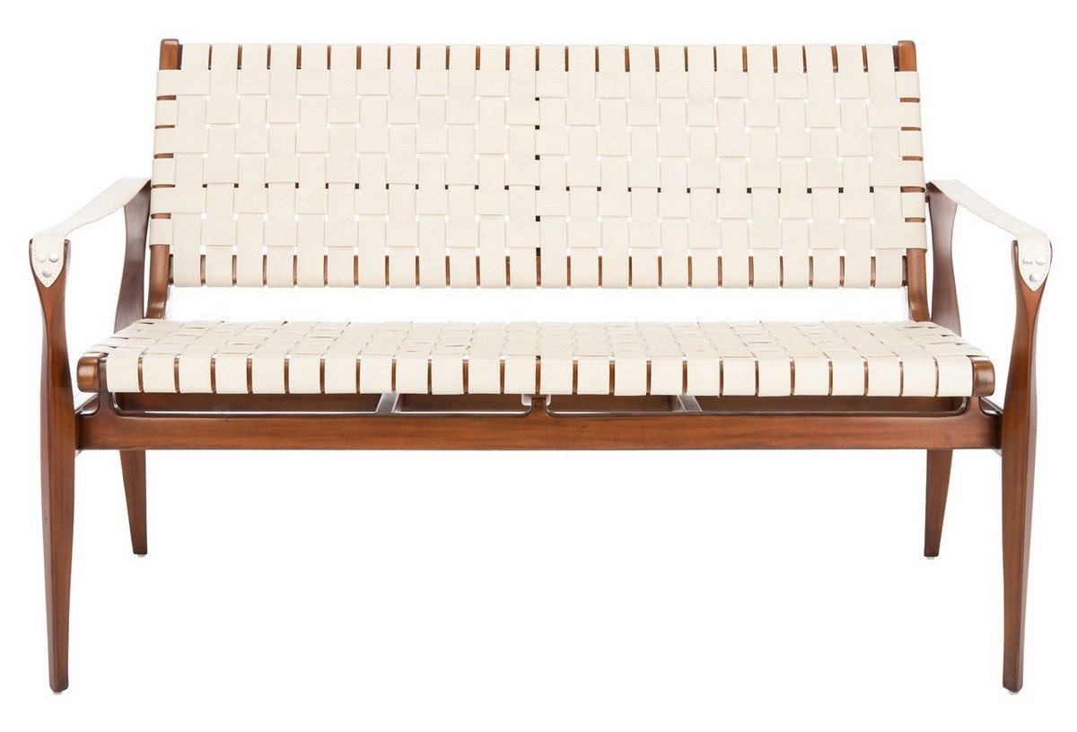 Leonard Leather Loveseat White / Light Brown