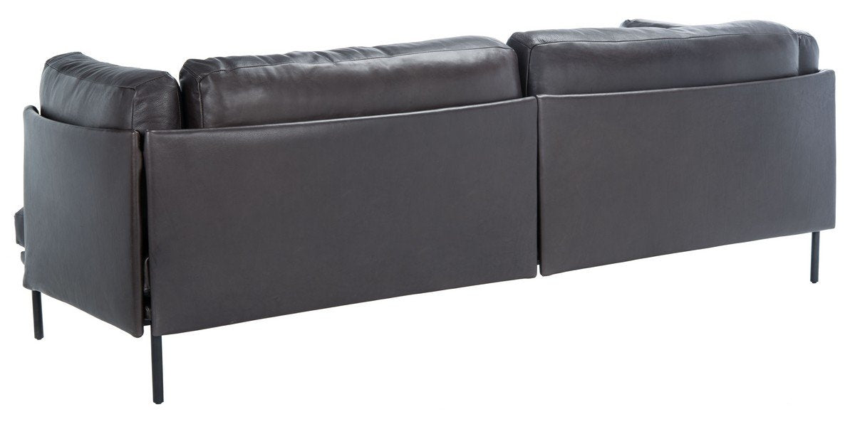 Penthouse luxury perfectly designed for the modern minimalist, this Marko Sofa is a must-have for high-style contemporary interiors. Marko’s ultra-plush top grain Brazilian leather cushions is decadently smooth to the touch, and its graphite tone seamlessly accents any room’s color scheme. Raised matte black metal legs complete the look.
