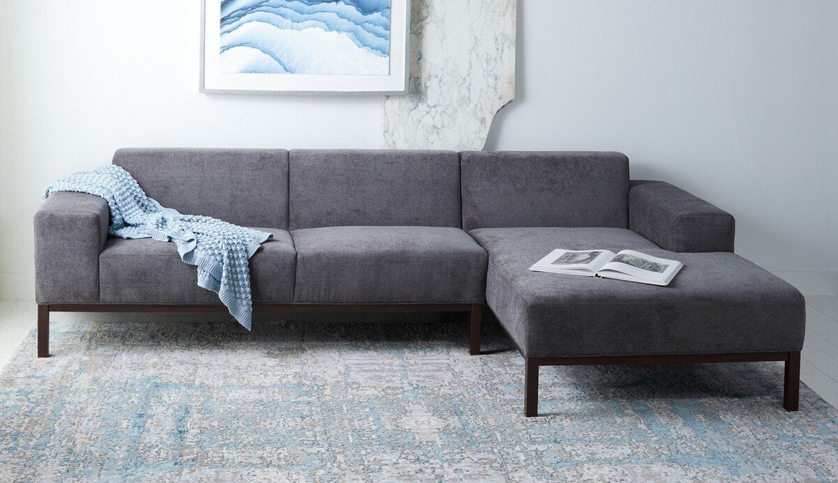 Make a monumental design statement with this decadent mid century sectional sofa. The intricate construction of its steel grey cream upholstery and sleek legs adds instant luxury to any living room. Designers use it as an instant focal point.
