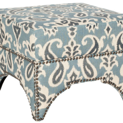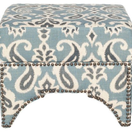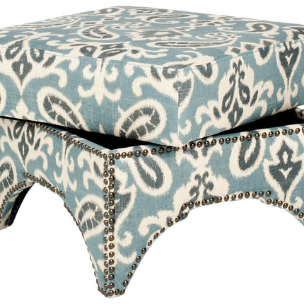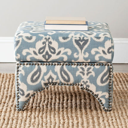 Clancy Ottoman Brass Nail Heads Blue/ Grey/ Off White Pattern