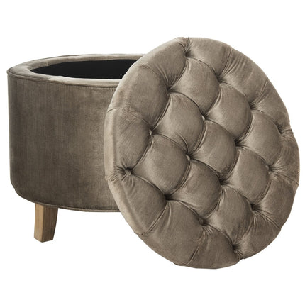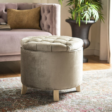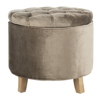 Emma Tufted Storage Ottoman Antique Sage/ Pickled Oak