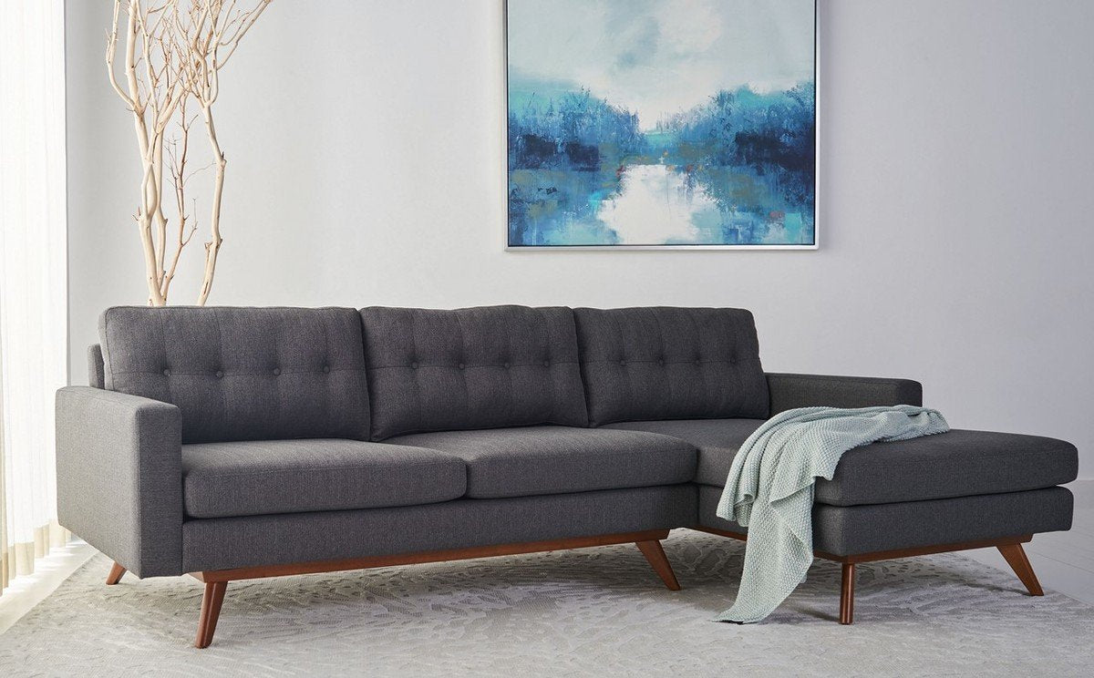 Hughes Modern Linen Sectional Sofa Slate Grey