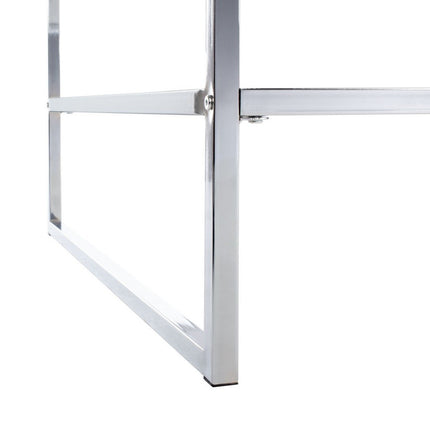 This sleek and streamlined Lizi Coffee Table is a beautiful meeting of form and function. Designed with two tiers for designer-smart storage and a chic sense of dimension, Lizi’s juxtaposition of a high-gloss white lacquer top, lower glass shelf, and open chrome frame give any living room additional decorative depth.